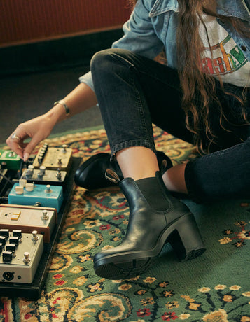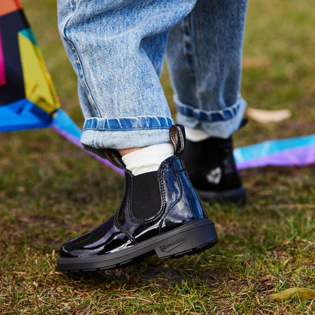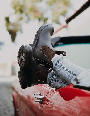 The Blundstone #587 Chelsea ankle boots are made of black leather with side elastics. Supplied with front and back tabs making them easy to fit, and a non-slip rubber lug sole with a raised heel. A sports shoe from the Classics series that you can combine with a casual look or with a more formal outfit.